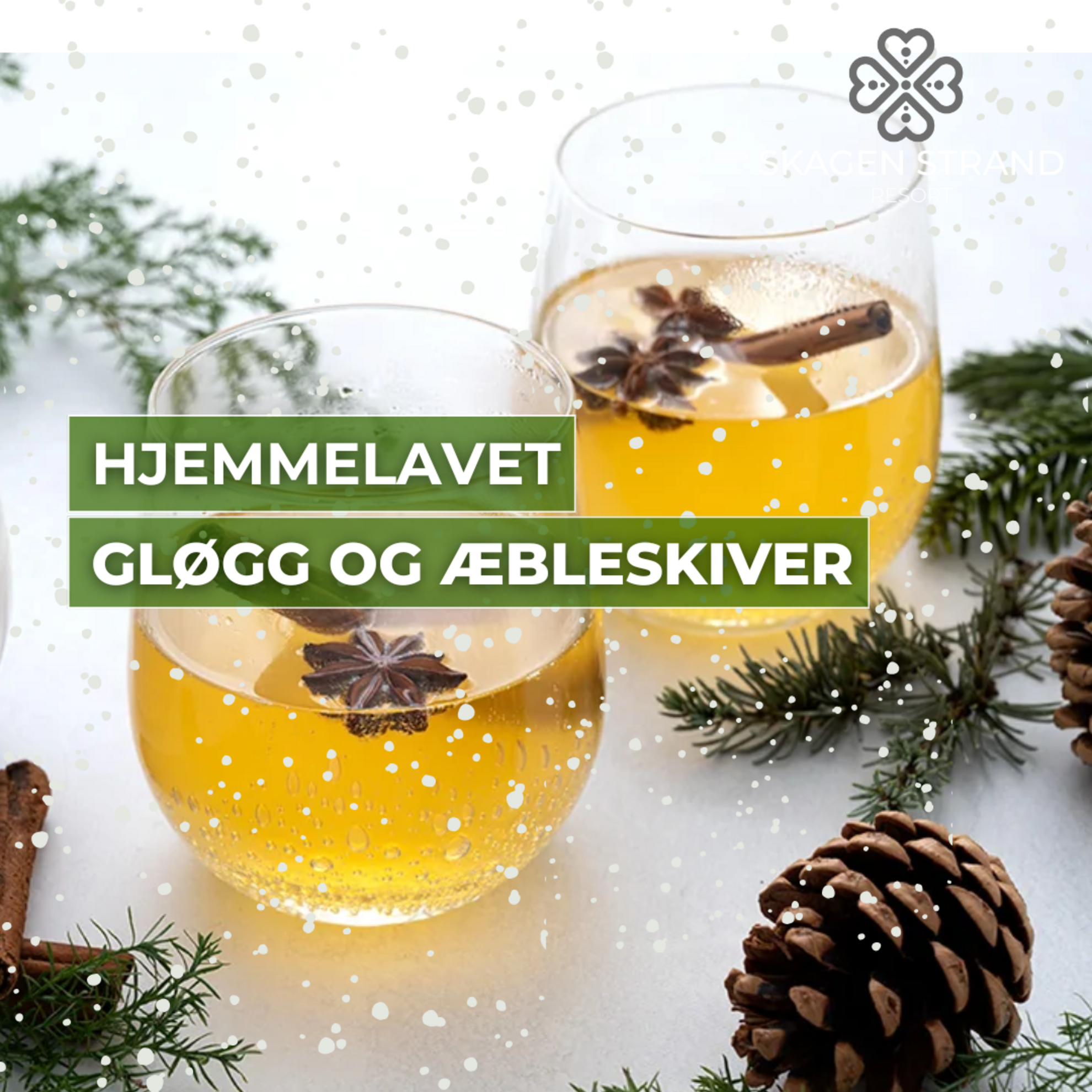 Her får du en varm og hjemmelavet hvid gløgg på æblemost, hvidvin og krydderier som kanel, kardemomme, vanilje og stjerneanis. Toppet med friske æblestykker, honning og mandler – afrundet med en lækker portvin.